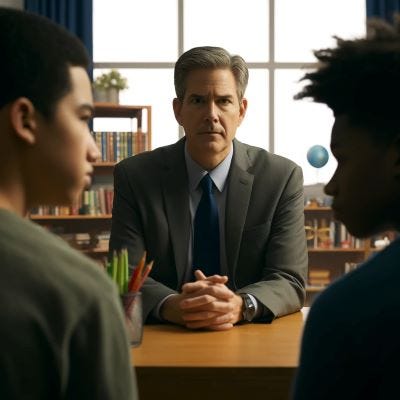 1. Gostaria de criar as situações no contexto de uma escola para a geração de imagens que possam ser utilizadas numa discussão, a partir de critérios como: personagens (professores, alunos, diretor, funcionários), cenário (sala de aula, quadra poliesportiva, biblioteca, pátio, sala do diretor), tipo de interação (conflito, colaboração, ensino-aprendizagem, diversão), temas transversais (inclusão educacional, diversidade cultural, Direitos Humanos). As situações devem ser apresentadas numa tabela.
