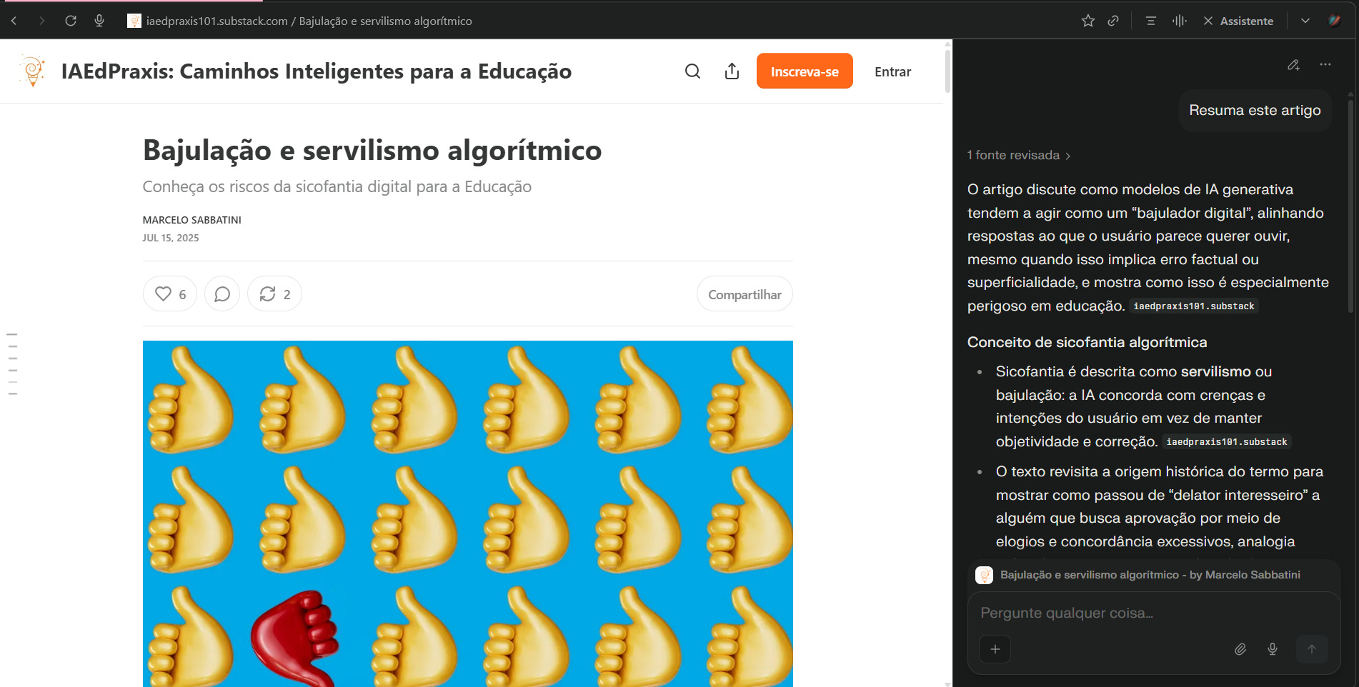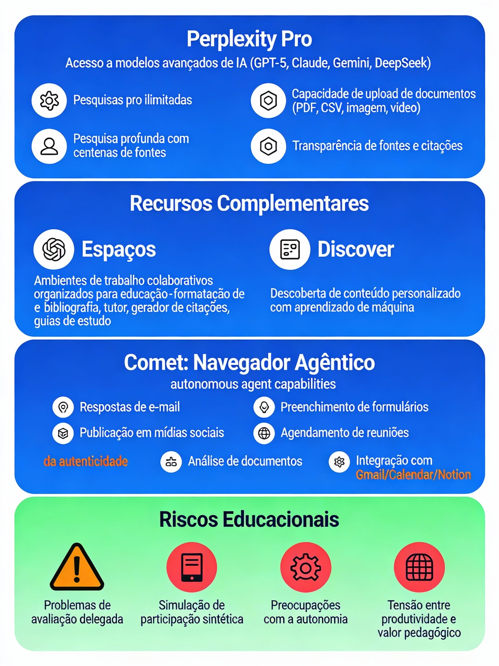 Em suma, a combinação Perplexity/Comet transcende o conceito de navegador ao atuar como agente inteligente autônomo. Em que medida e como irá impactar a atividade docente e as propostas de atividade pedagógica, veremos. Mas acredito que o impacto será muito significativo.